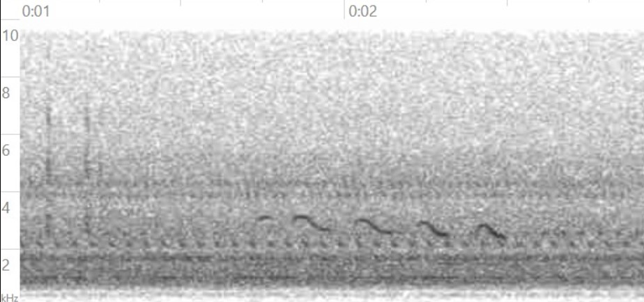 In all, he, with the help of fellow NFC experts and enthusiasts, identified 47 species. Some were easy, such as American robins that have the same call they use in the daytime, and others have distinctive spectrographs such as that of American redstarts which I identified immediately. The sparrows and warblers are all in the high kilohertz (six to 10 range) and nine warbler species have almost identical “zeep” calls lasting 60 milliseconds, while another nine warbler species with “up” calls last 30 to 50 milliseconds. But only two warbler species—northern parula and pine warblers—have the “single down sweep” calls at 50 milliseconds.
