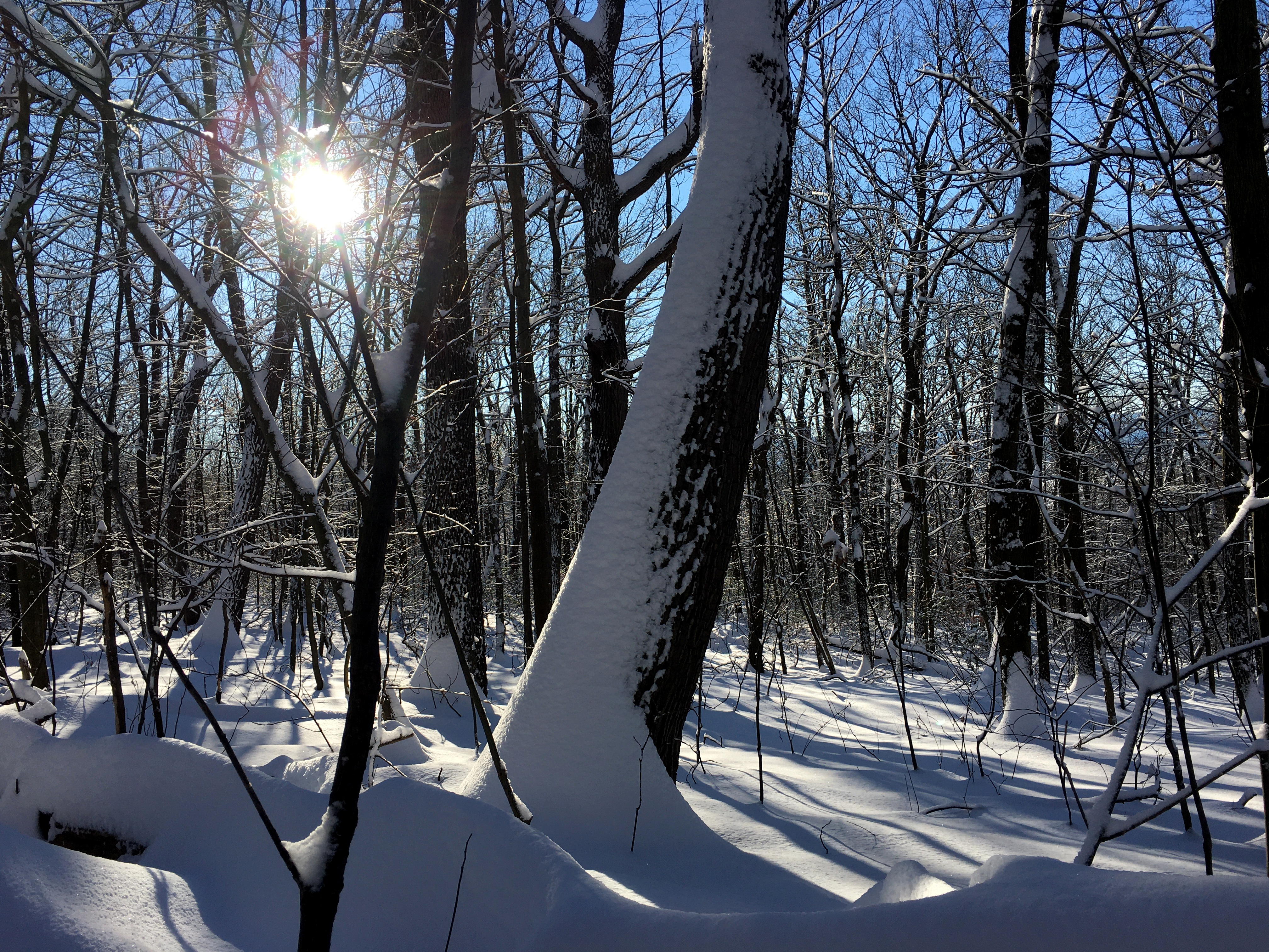 After a long, late fall, winter dropped a white shroud more than a foot deep over our mountaintop just in time for our Christmas Bird Count last year. Although I managed to get outside for a short jaunt around Butterfly Loop where our caretaker Troy had plowed, I left wading through the snow up to our son Mark. Instead, I spent most of the day sitting at our bow window counting the birds at our feeders with my husband Bruce.