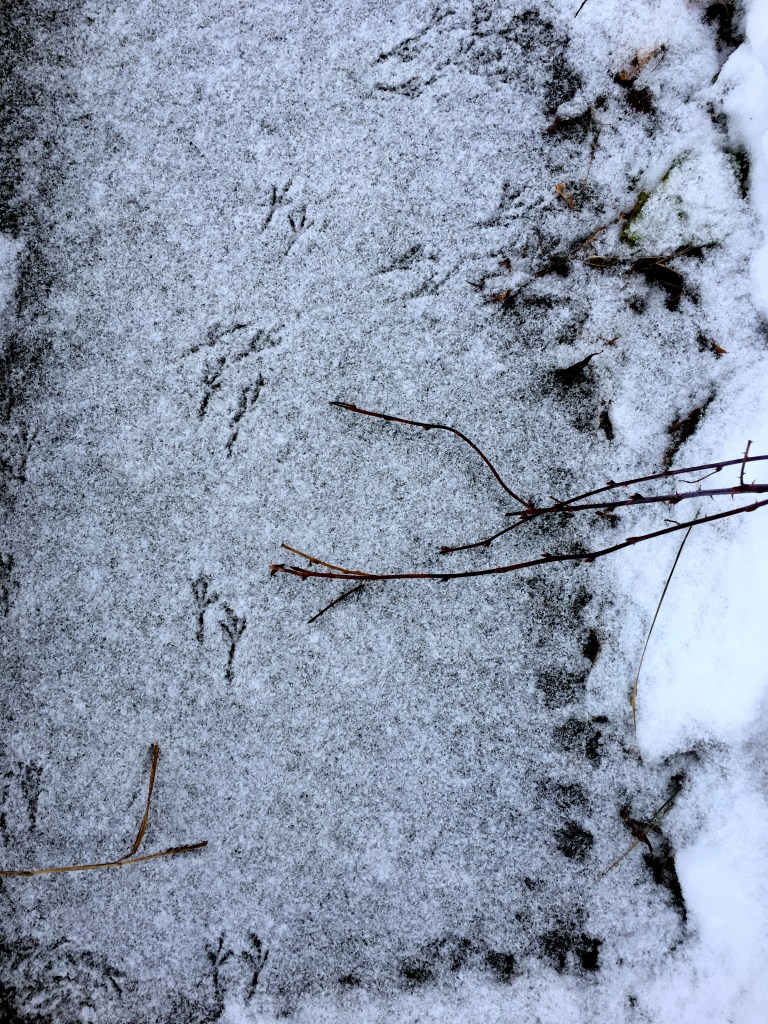 In the dawn light birds flocked to the feeder area and continued throughout the day—60 dark-eyed juncos, four northern cardinals, six mourning doves, three white-throated sparrows, a pair of song sparrows and another of American goldfinches, four tufted titmice, four black-capped chickadees, four house finches, two white-breasted nuthatches, and a Carolina wren, blue jay, downy woodpecker, American tree sparrow, and red-bellied woodpecker—15 common species in all.
